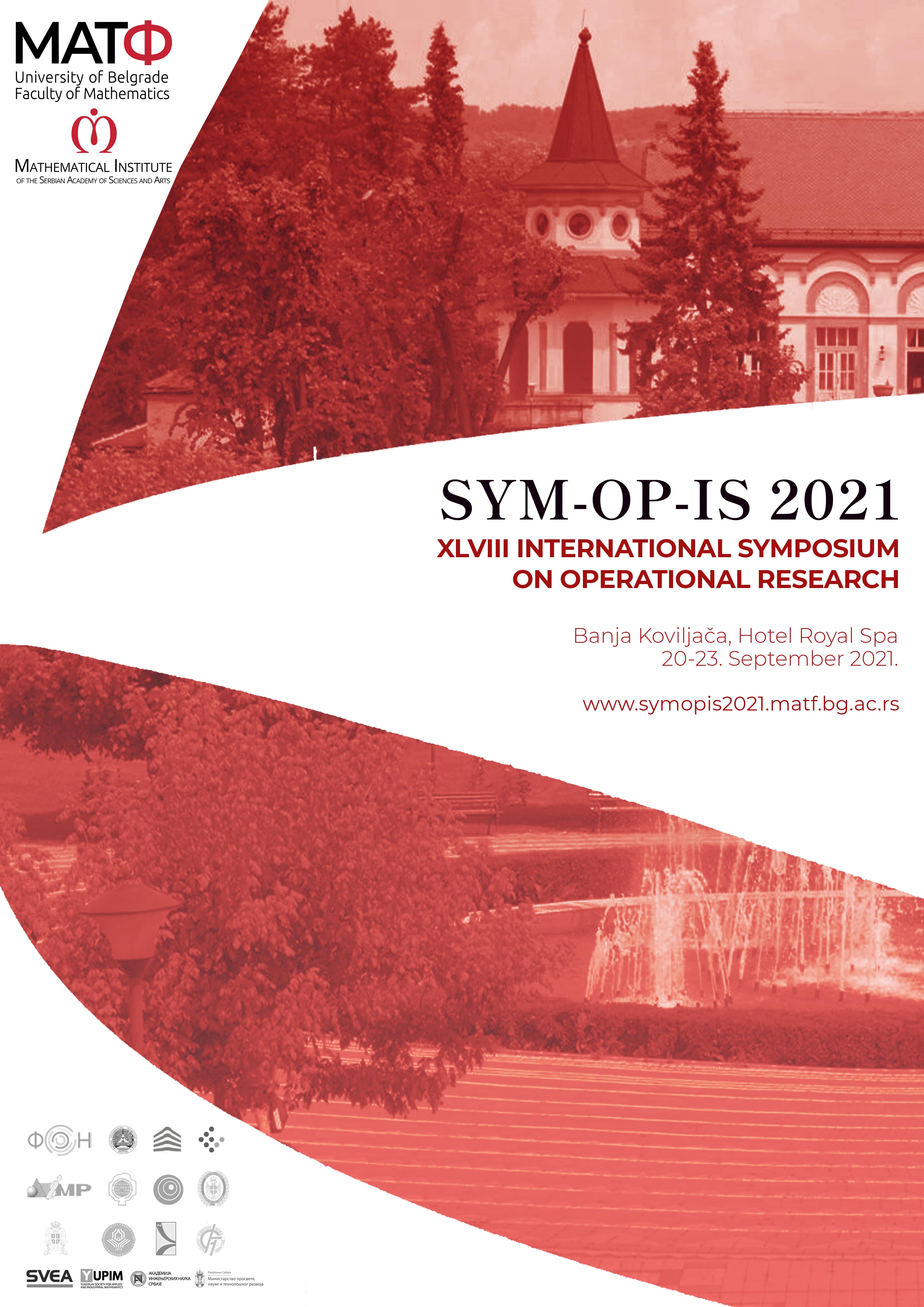 Faculty of Mathematics - University of Belgrade and Mathematical Institute of the Serbian Academy of Sciences and Arts, traditionally, in cooperation with other higher education and research institutions, as well as scientific societies, organize XLVIII Symposium on Operational Research - SYM-OP-IS 2021.